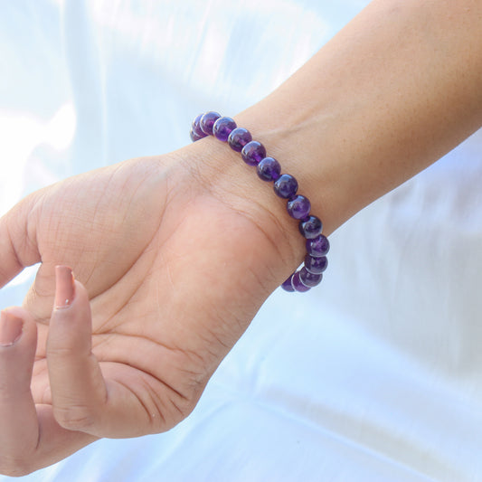 Amethyst Natural Gemstone Reiki Healing Crystals Handmade 8mm Round Beads Stretch Bracelet for Women & Men | Spiritual Gift | Mother's day Gift | Adjustable size Crystal Bracelet for Women