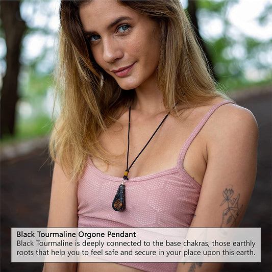 Black Tourmaline Chakra Orgonite Drop Pendant for Chakra Balance Deep Meditation Inner Mind Healing Empowerment, Powerful Orgone Energy Generator & Reiki Healing Protection Pendant