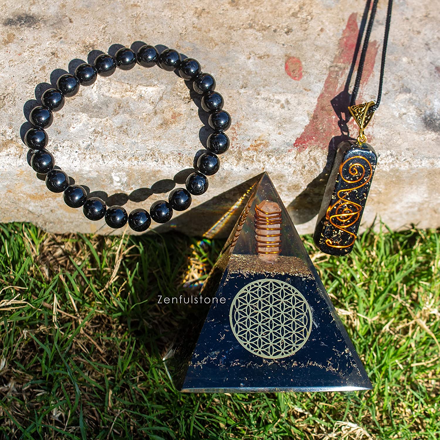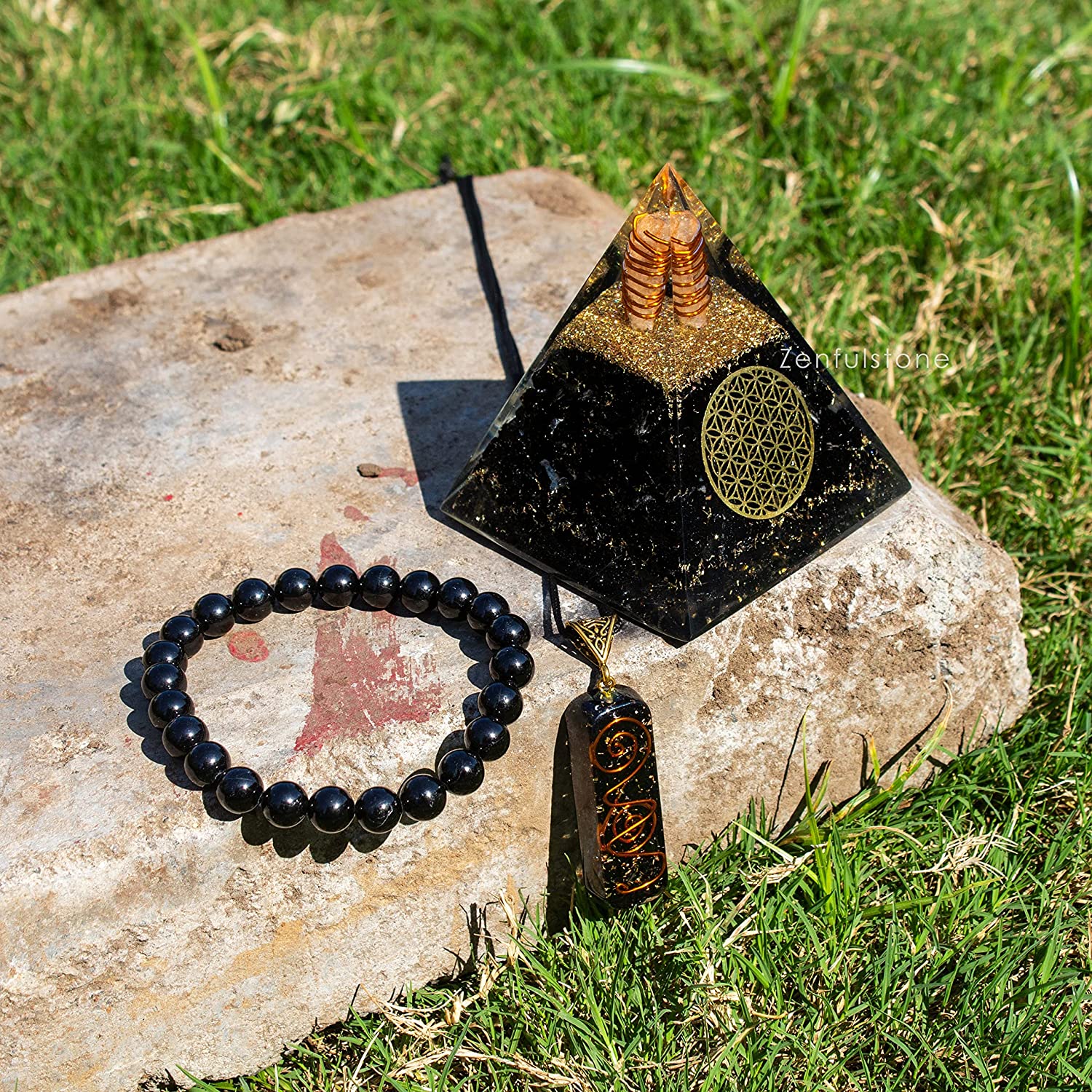 This set is exactly what I needed. The pyramid sits by my bed, and I wear the bracelet every day to stay grounded.