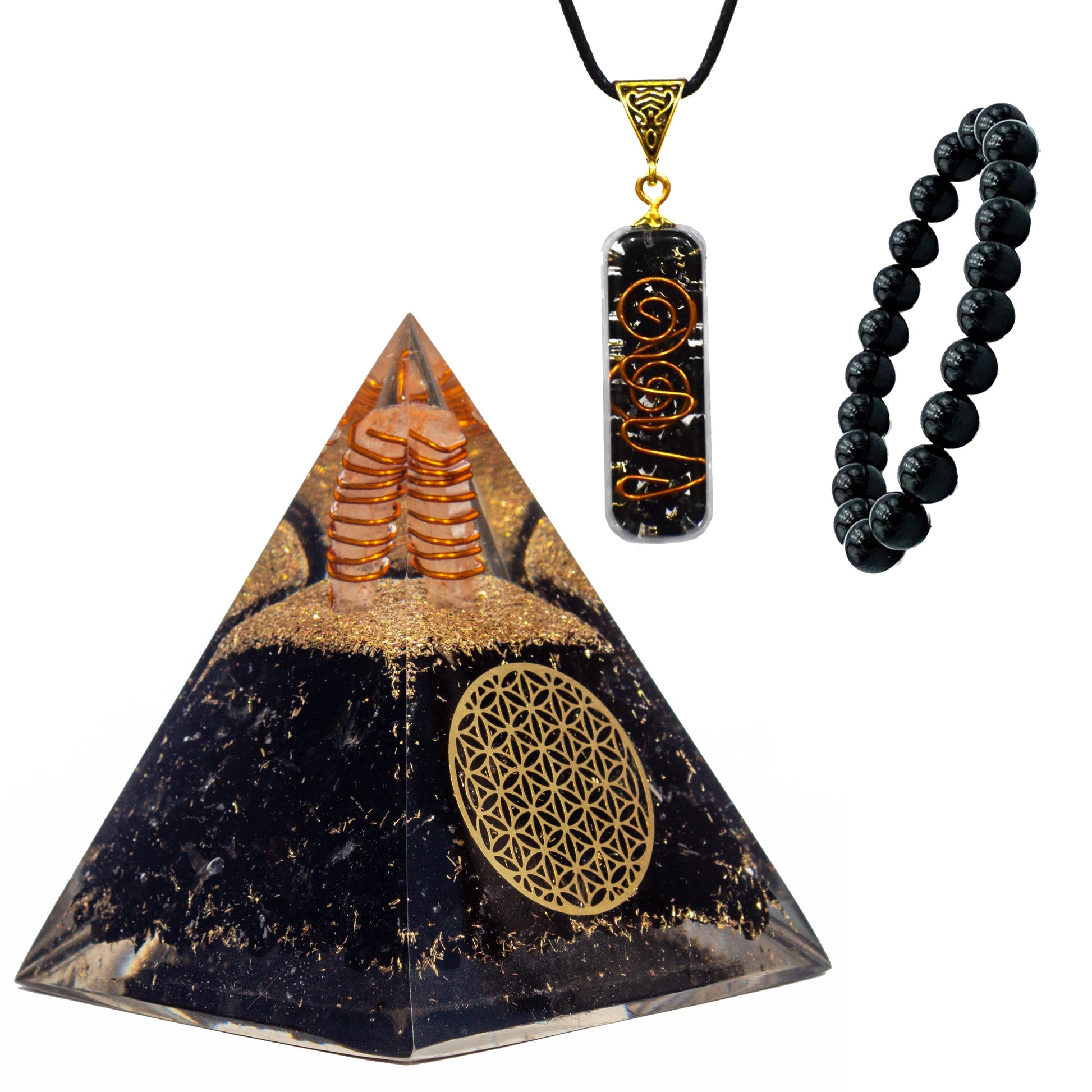 Black Tourmaline Orgone Pyramid, Necklace & Bracelet Gift Set