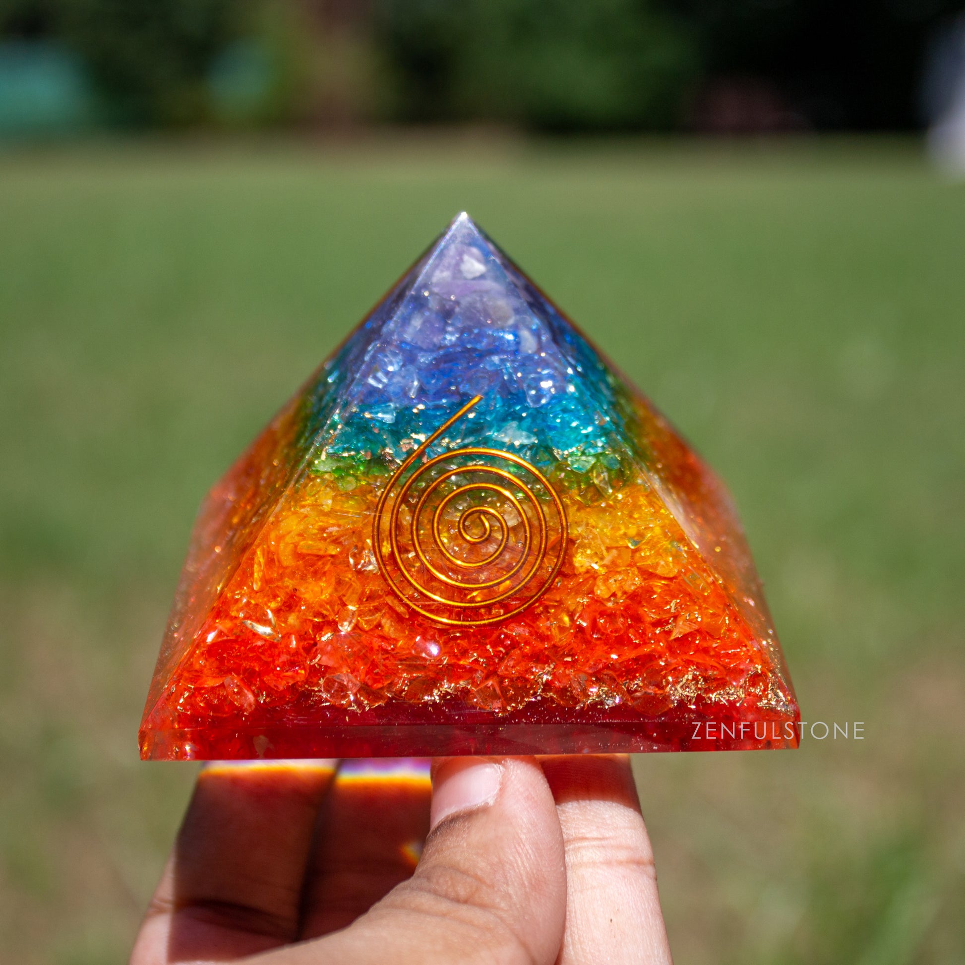 - The size of the pyramid is large ranging from 80 to 85 mm. It has the ability to absorb any bad energy and clear the surroundings, allowing you to feel more happy.