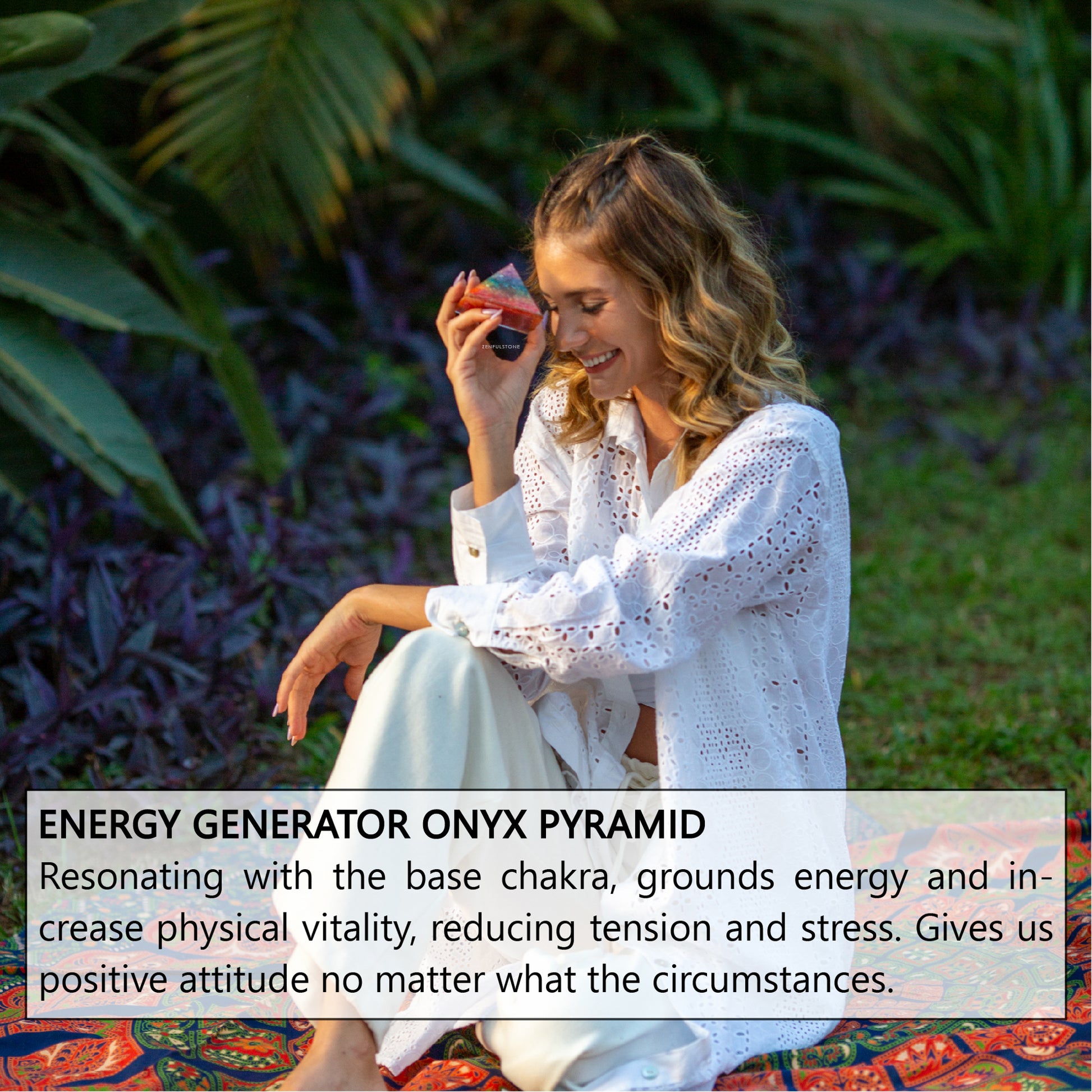 7 Chakra Onyx Pyramid for E-Energy Protection & Healing