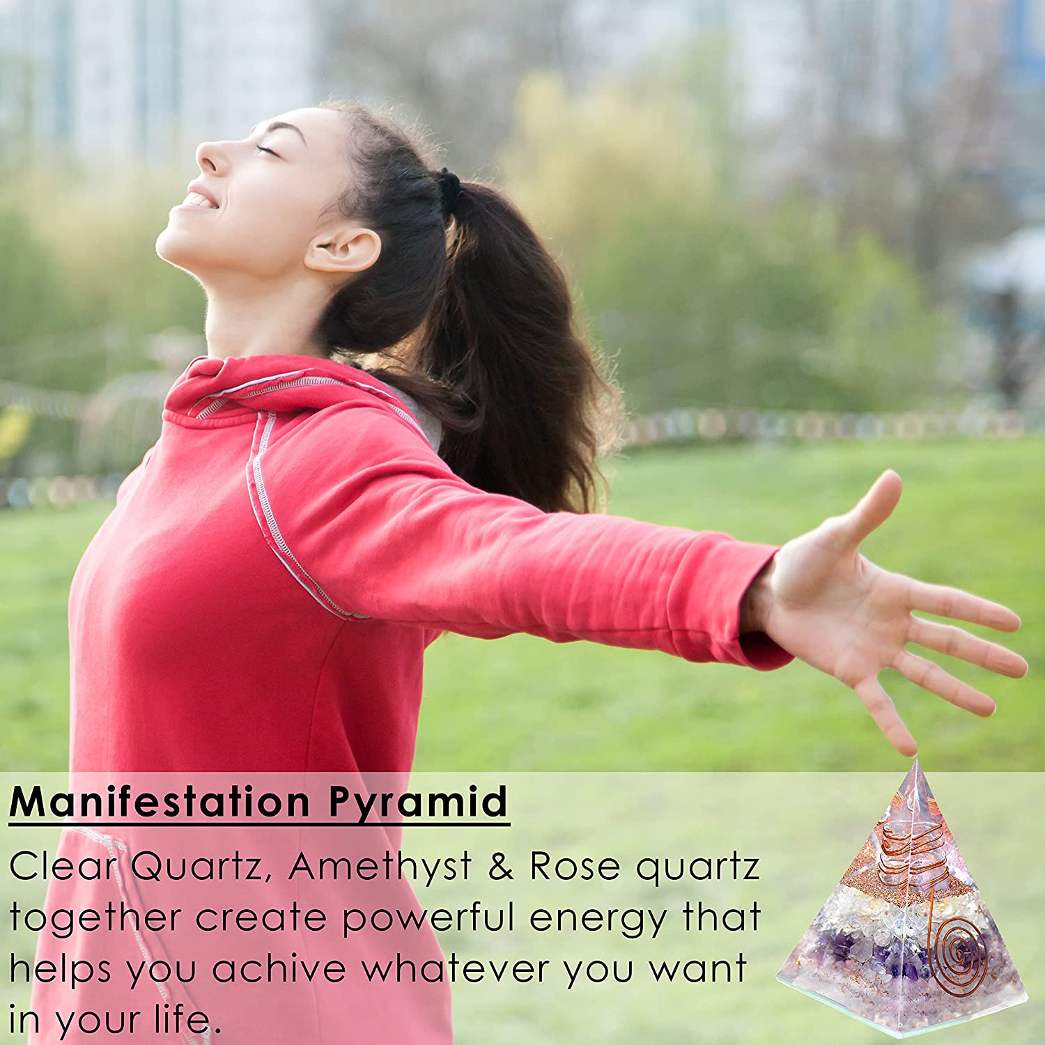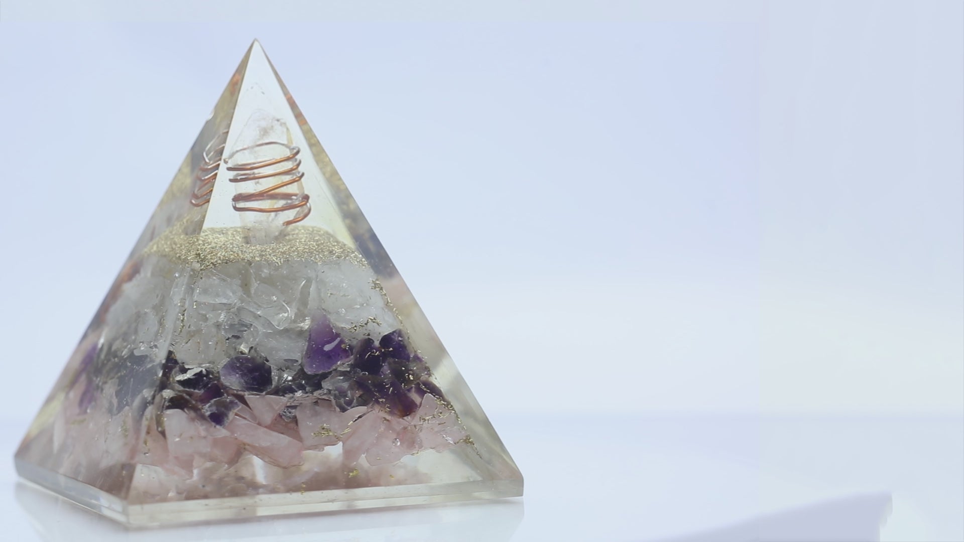 Amethyst Clear quartz and Pink rose quartz Crystal Orgone Pyramid for Love, Manifestation & Healing, Orgonite pyramids with Copper Coil and Crystal Quartz for Chakra Protection