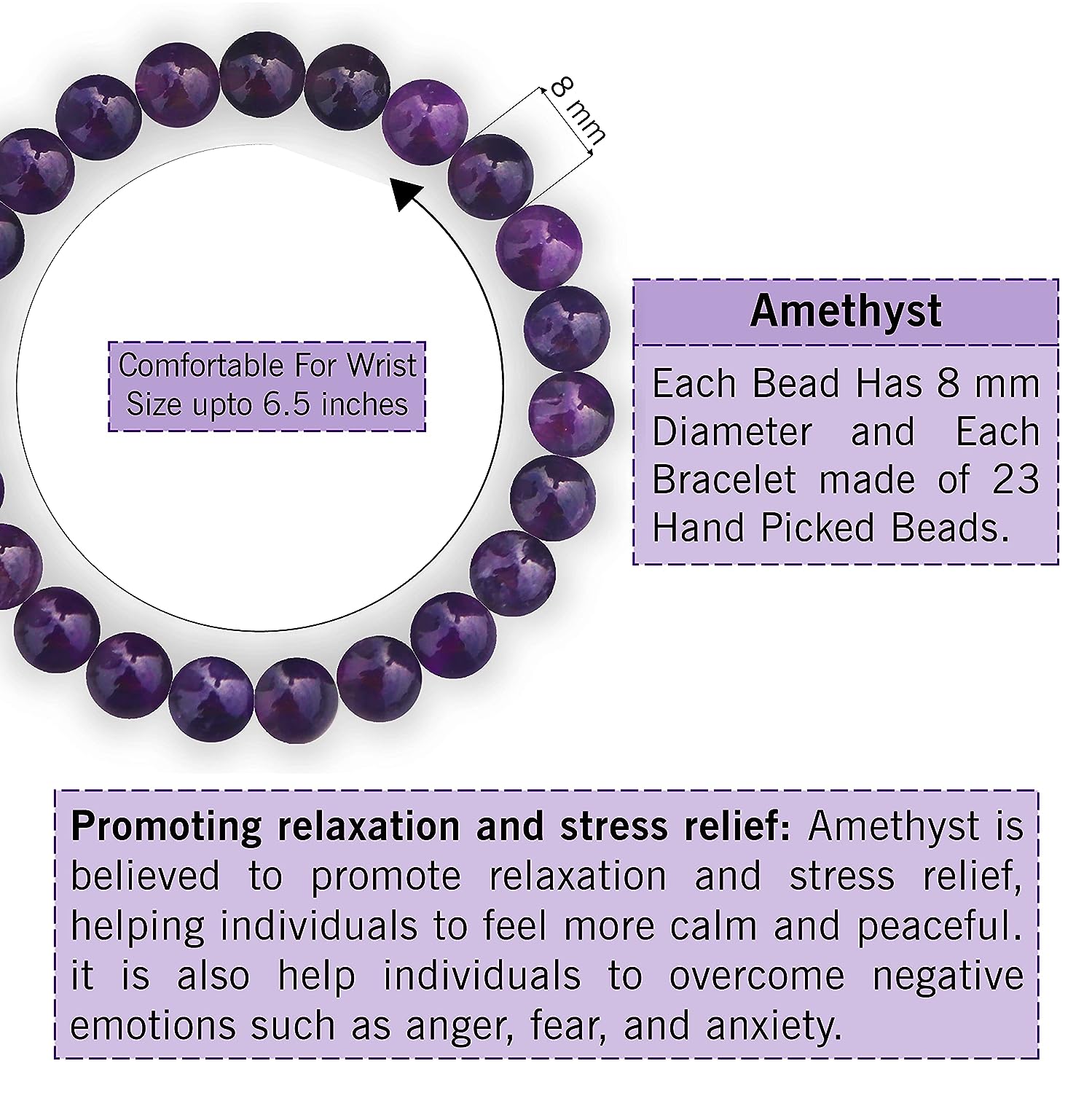 - ⭐ Handmade with Care: Each Amethyst bracelet is made from 23 carefully handpicked bead and strung by skilled artisans, ensuring a high-quality and unique piece. The stretchable design ensures a comfortable fit for wrist sizes between 6.5 and 7.5 inches.