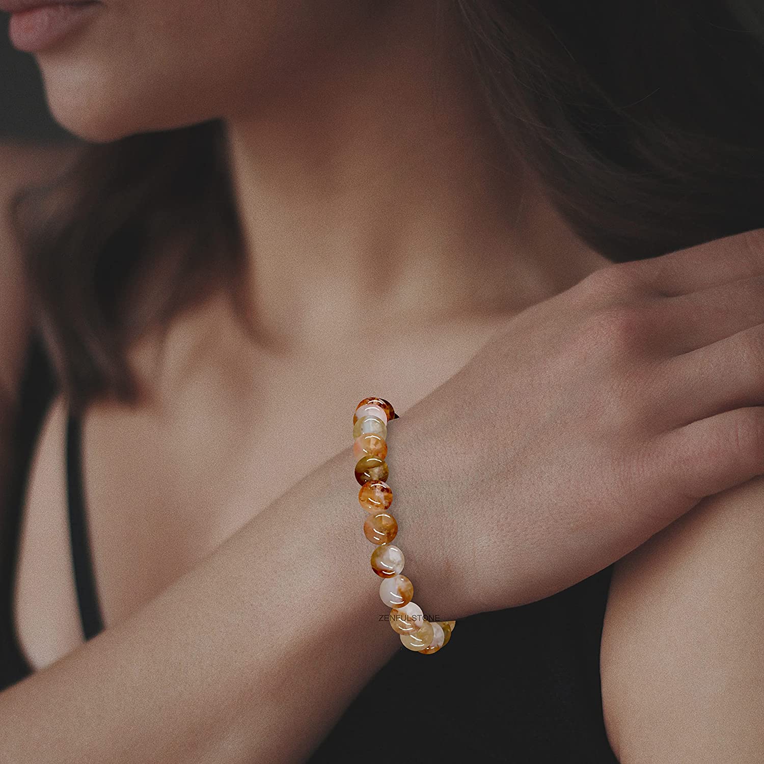 Citrine Natural Gemstone Reiki Healing Crystals Handmade 8mm Round Beads Stretch Bracelet for Women & Men | Spiritual Gift | Mother's day Gift | Adjustable size Crystal Bracelet for Women