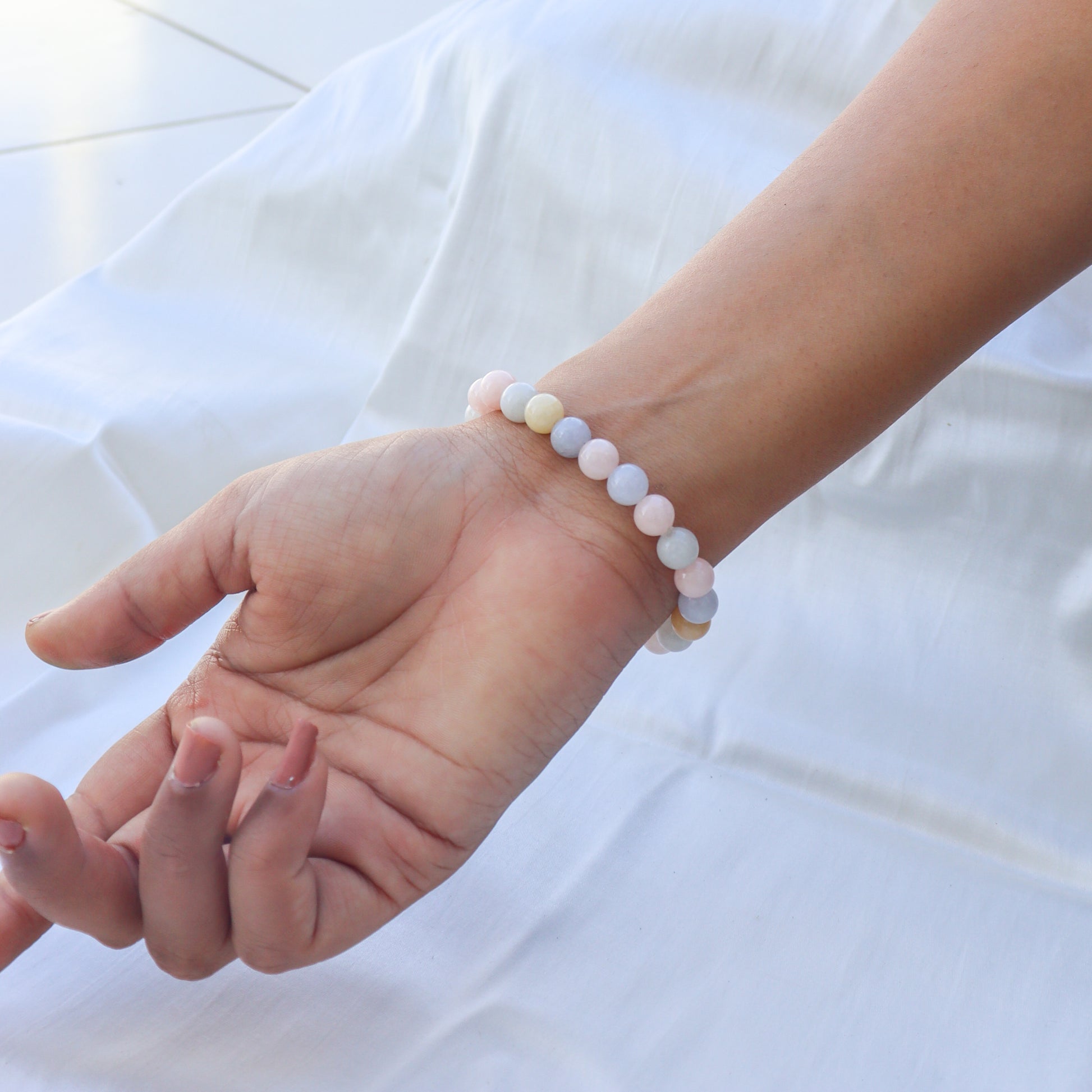 Morgonite Natural Gemstone Reiki Healing Crystals Handmade 8mm Round Beads Stretch Bracelet for Women & Men | Spiritual Gift | Mother's day Gift | Adjustable size Crystal Bracelet for Women