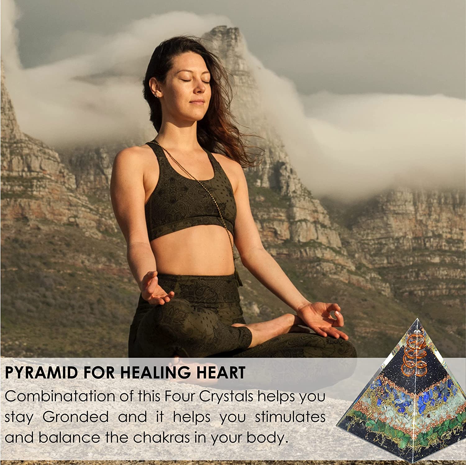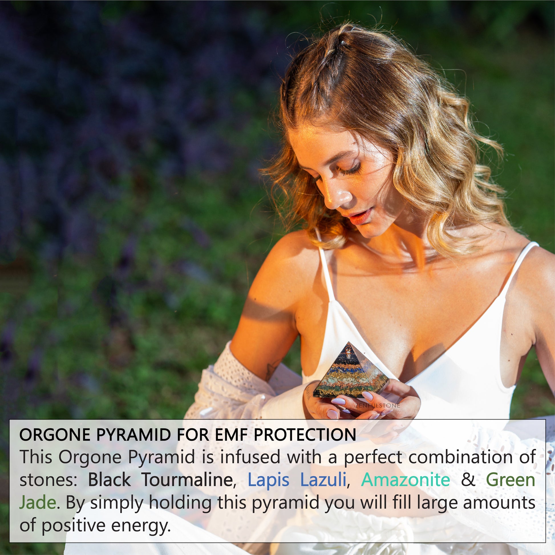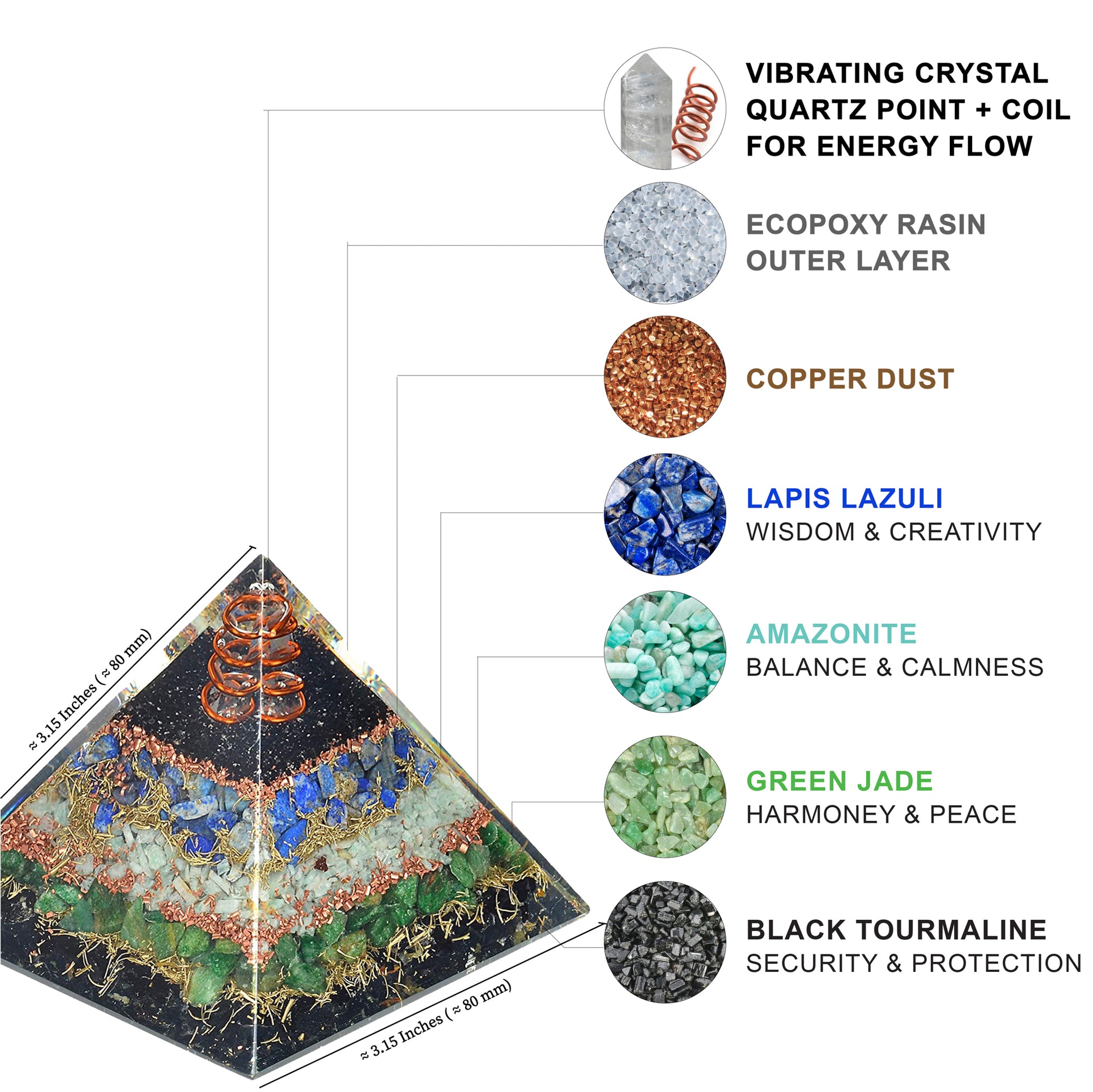 New Orgone Pyramid for Healing Heart | Black Tourmaline | Lapis Lazuli | Amazonite | Green Jade Orgonite Pyramid for Protection - Crystal Chakra Stone Pyramid