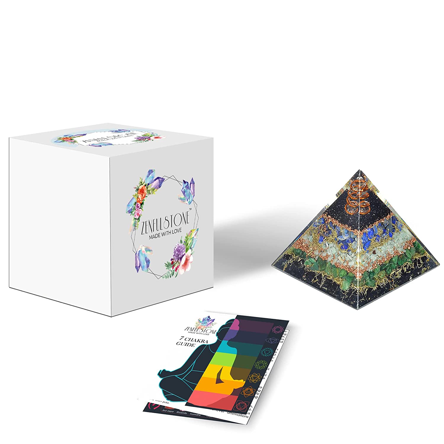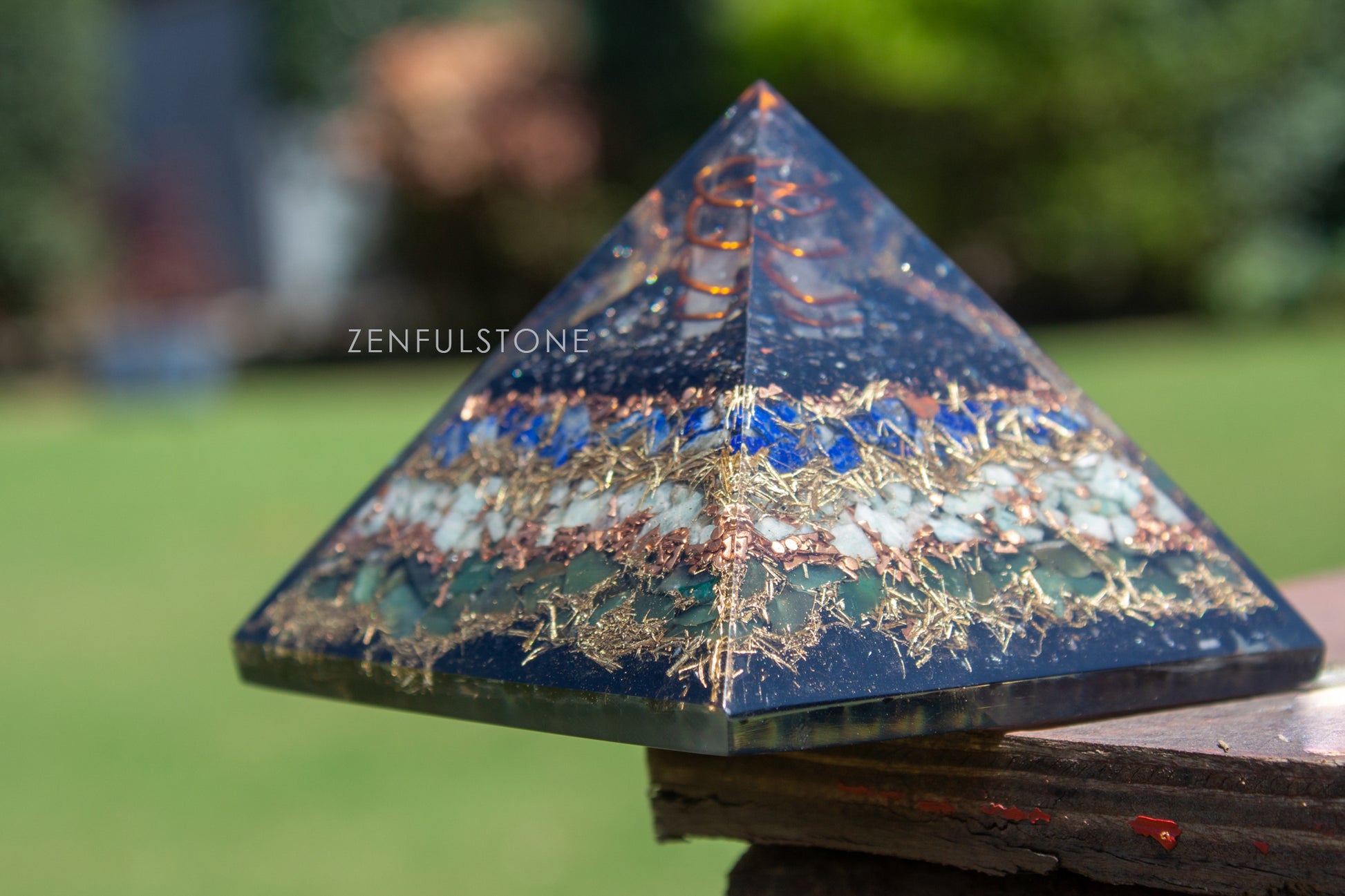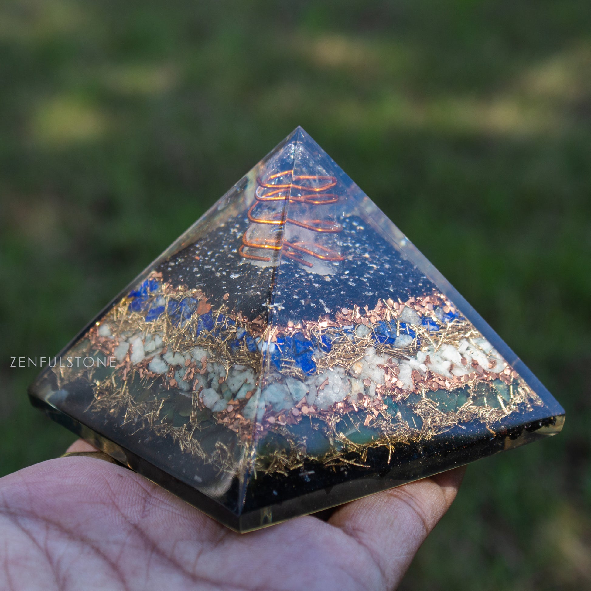 New Orgone Pyramid for Healing Heart | Black Tourmaline | Lapis Lazuli | Amazonite | Green Jade Orgonite Pyramid for Protection - Crystal Chakra Stone Pyramid