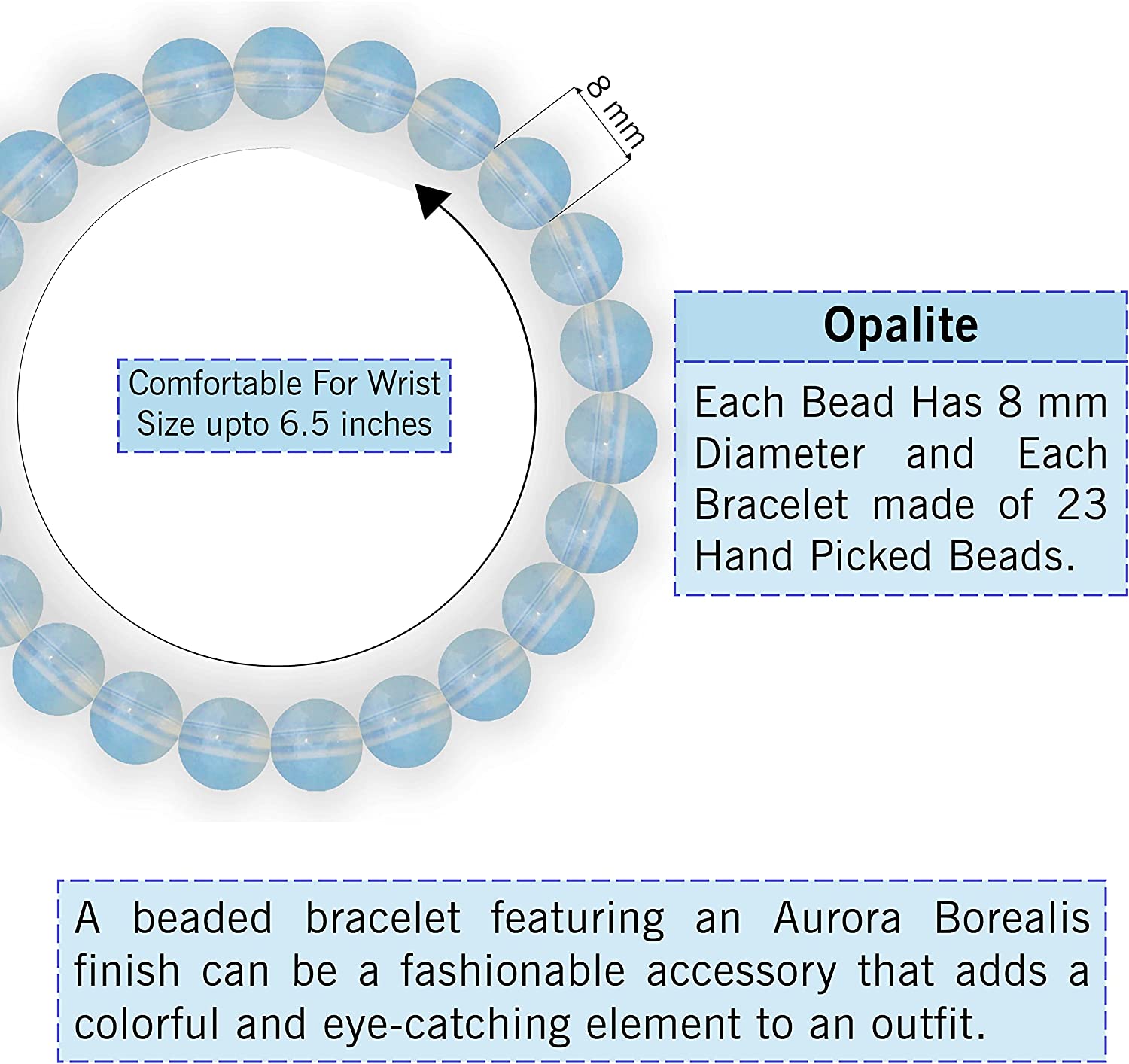 - Superior Quality: This beaded bracelet is made with high-quality, Opalite is Man Made beads that are carefully selected for their beauty and durability. The bracelet is crafted with strong elastic cord that can withstand daily wear and tear, ensuring that you are purchasing a durable and long-lasting product.
