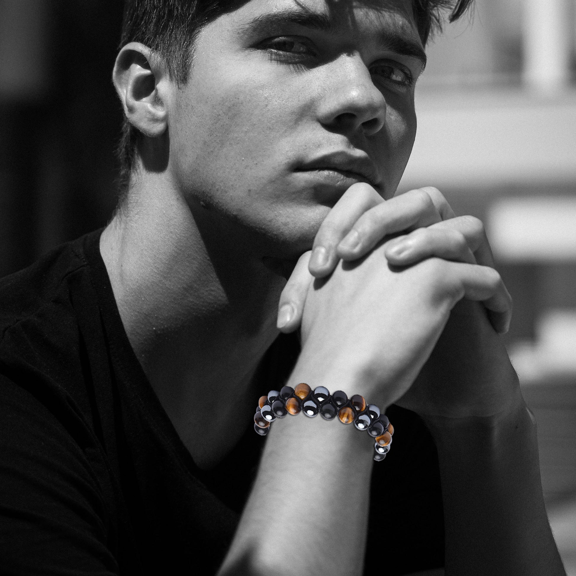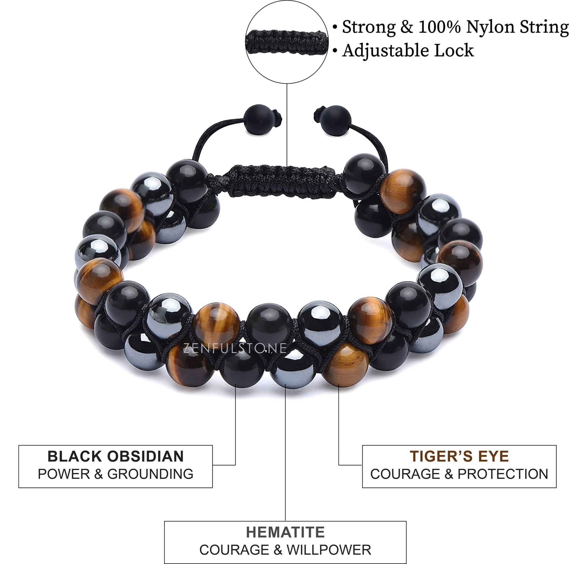 - DOUBLE-LAYER HANDMADE - The Triple Protection Bracelet combines the most powerful crystal stones Tigers eye, Obsidian & Hematite. We hand-select each natural stone for its beauty and metaphysical properties and have braided these triple healing stone beads together. The combination of all three powerful crystal stones increases their effectiveness. THIS ADUSTABLE CORD is fit for wrist sizes around 6.7-9.0 inches (17-23cm) The strings to adjust the size to be very sturdy and easy to slide.