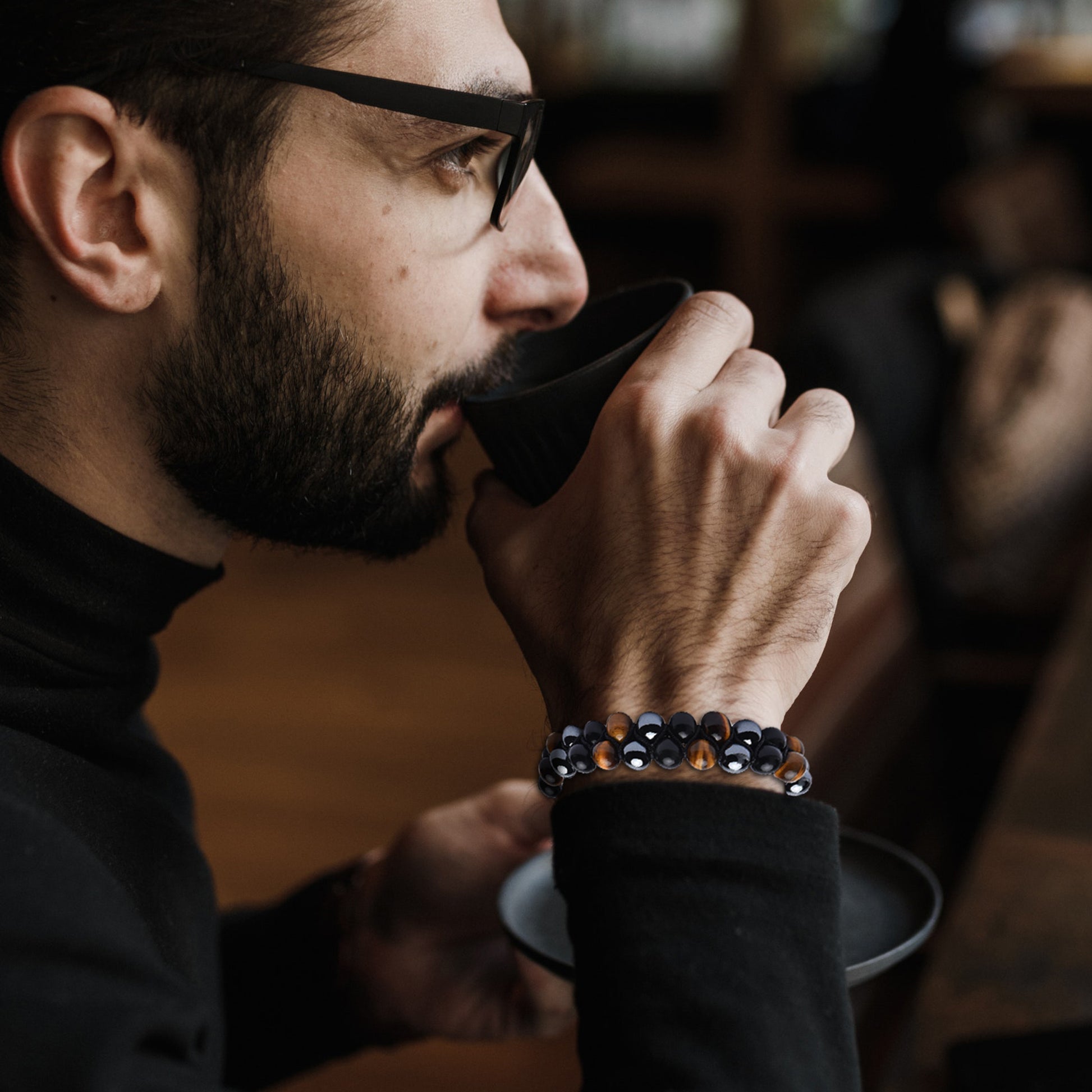 Triple Protection Bracelet, Authentic Tigers Eye Black Obsidian and Hematite 8mm Beads double layer Bracelet
