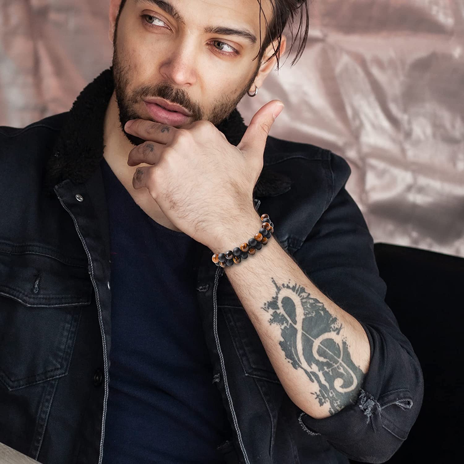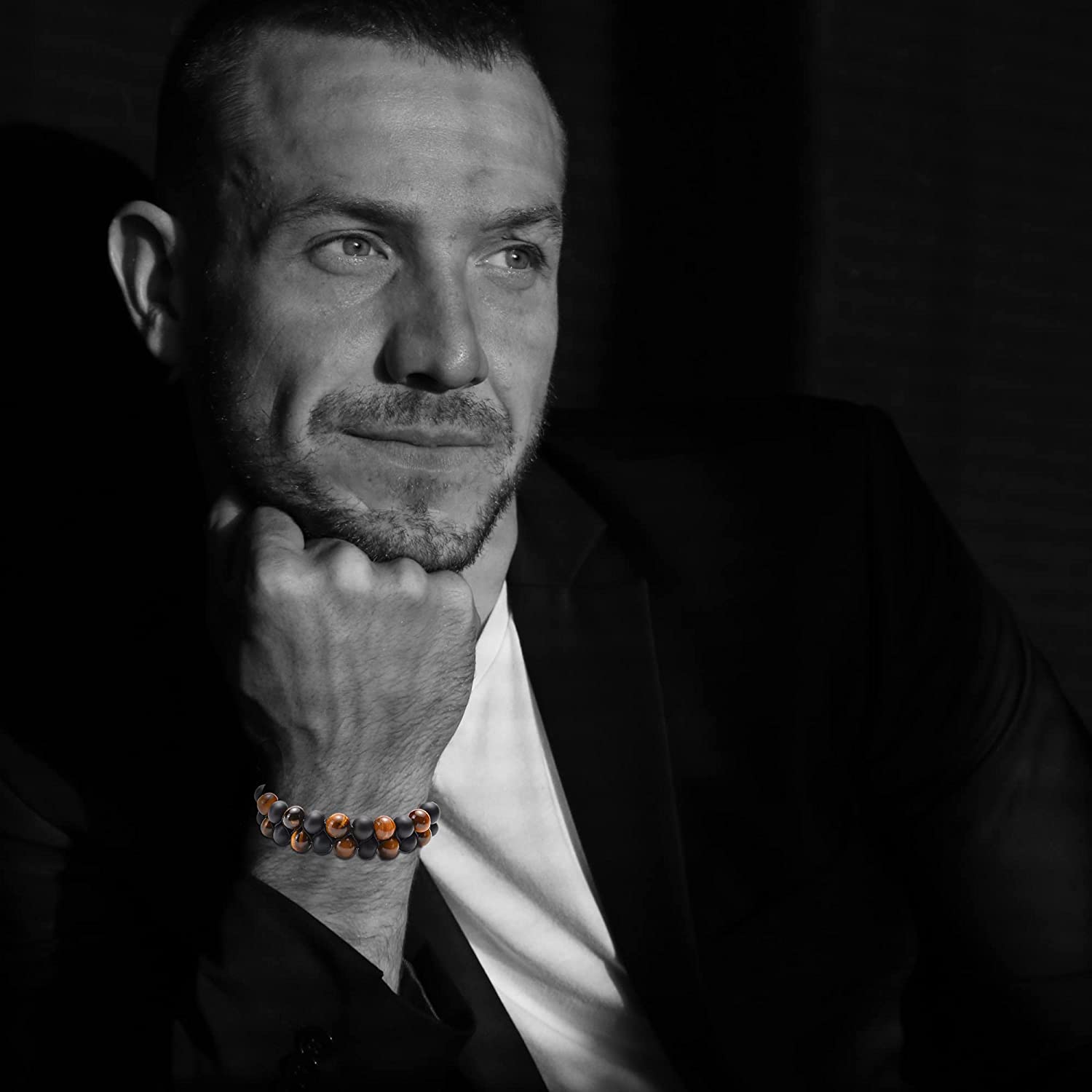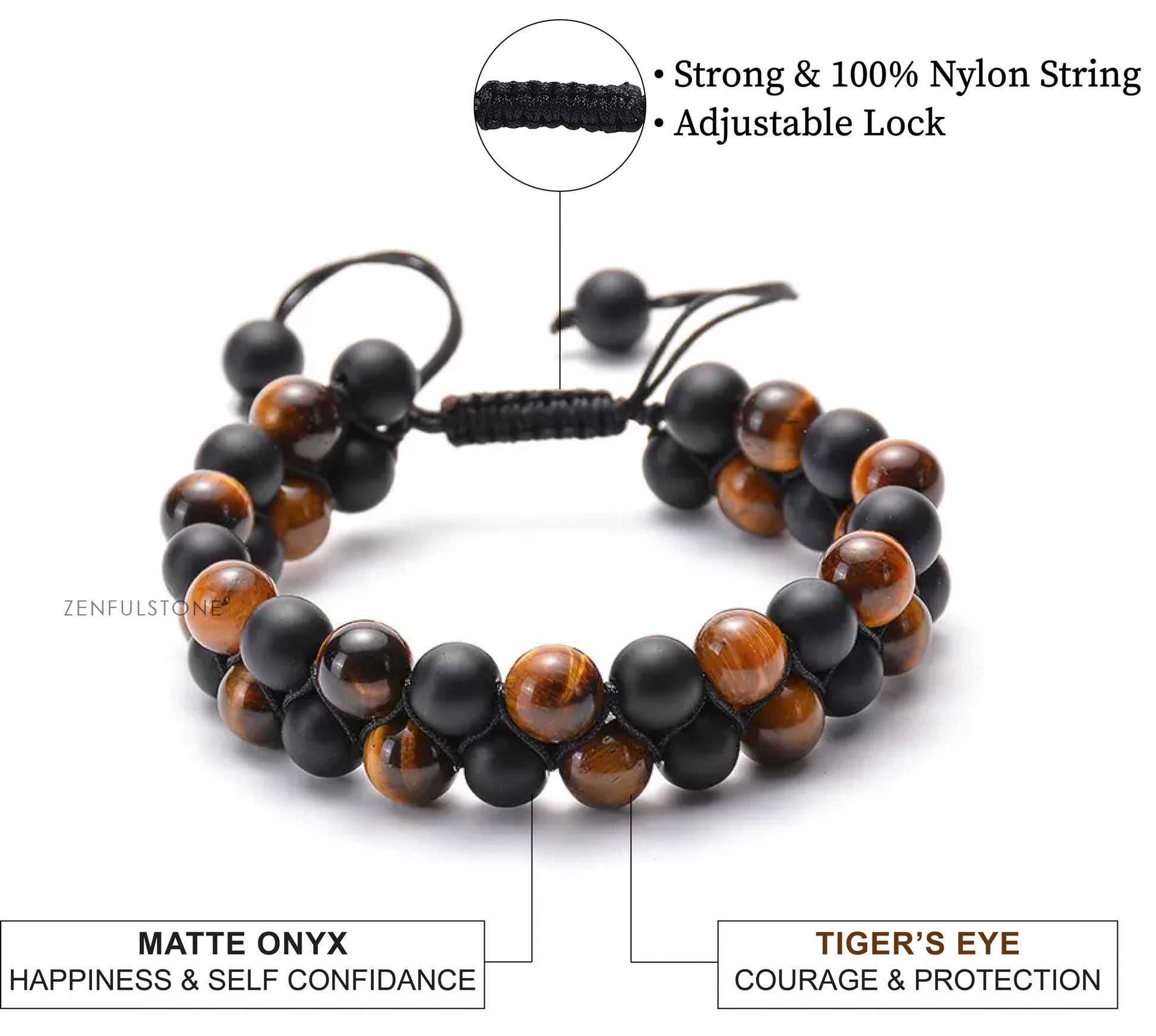 Triple Protection Bracelet Tiger Eye & Matte Onyx Stone - Tiger's Eye Healing Bracelet
